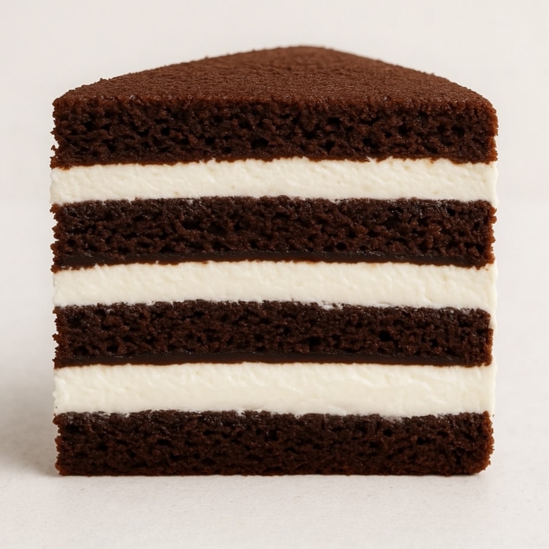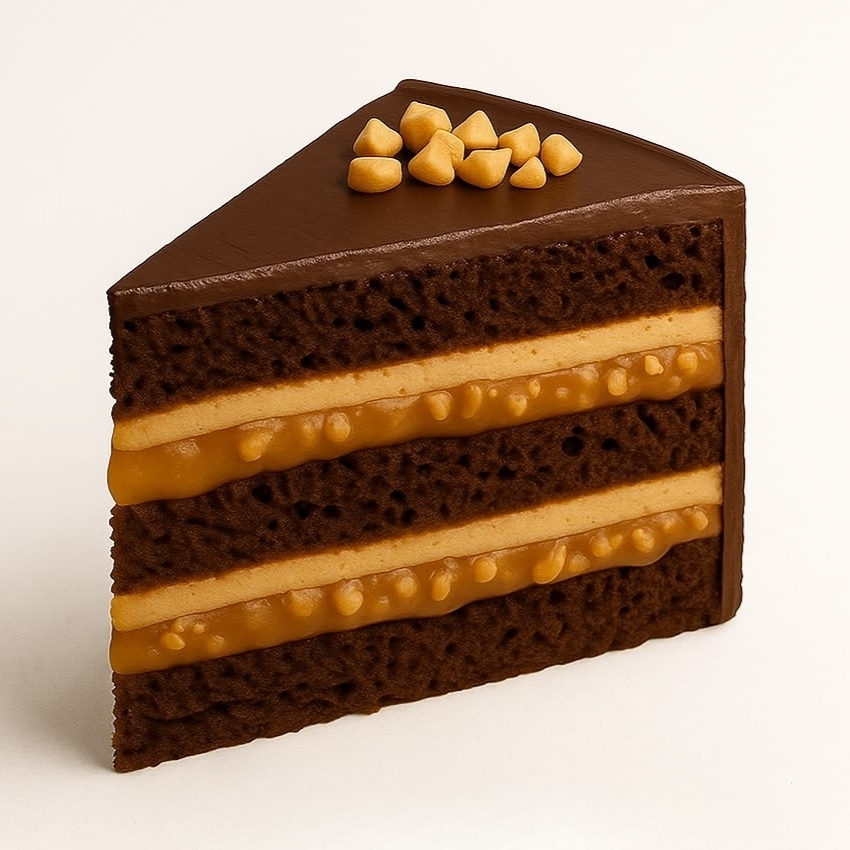 Влажный шоколадный бисквит с лёгкой цитрусовой пропиткой, тонкий слой тёмного ганаша и бархатный пломбирный крем-чиз. Каждый кусочек напоминает о любимых сладостях и делает день чуть ярче