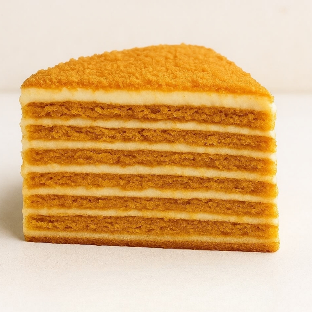 Классика из детства. Тонкие медовые коржи с нежным сметанно-сливочным кремом тают во рту, напоминая о уюте, праздниках и сладких воспоминаниях
